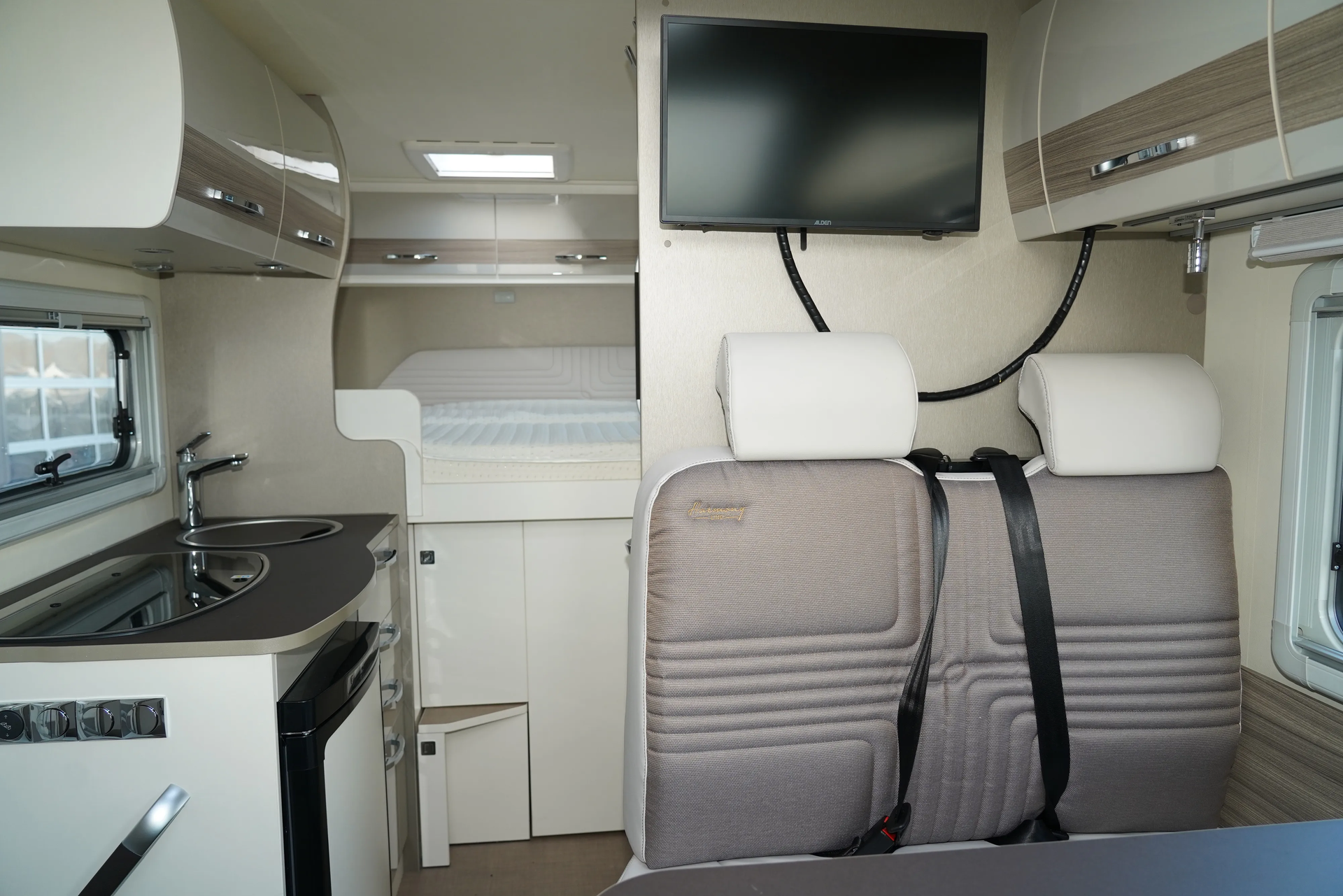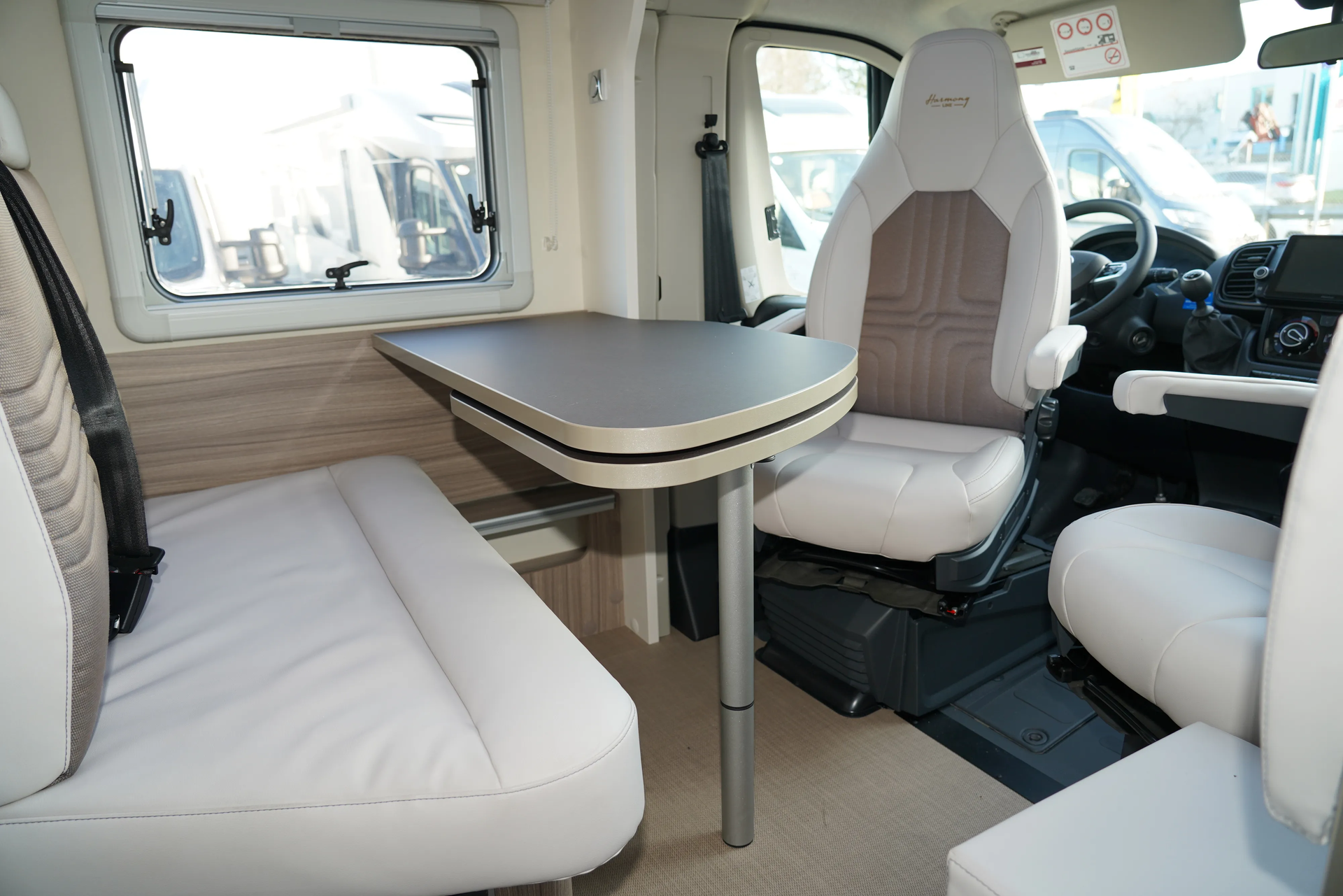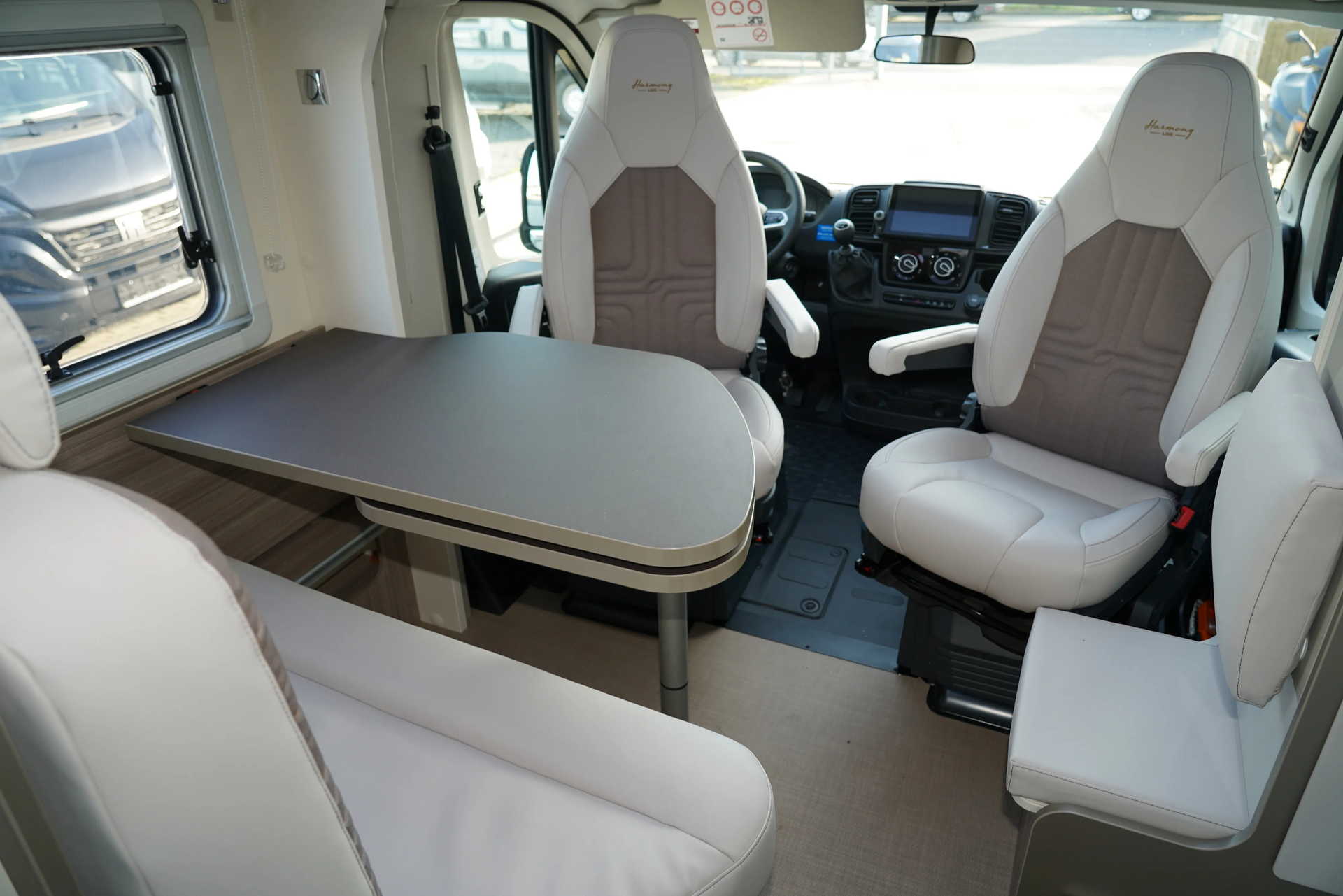 Armlehnen, Polster bezogen wie Wohnraum, Fahrerhausverdunkelung, Cassettenplissees Front- und