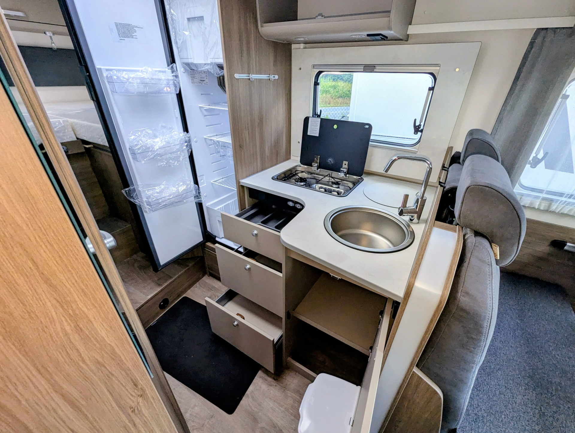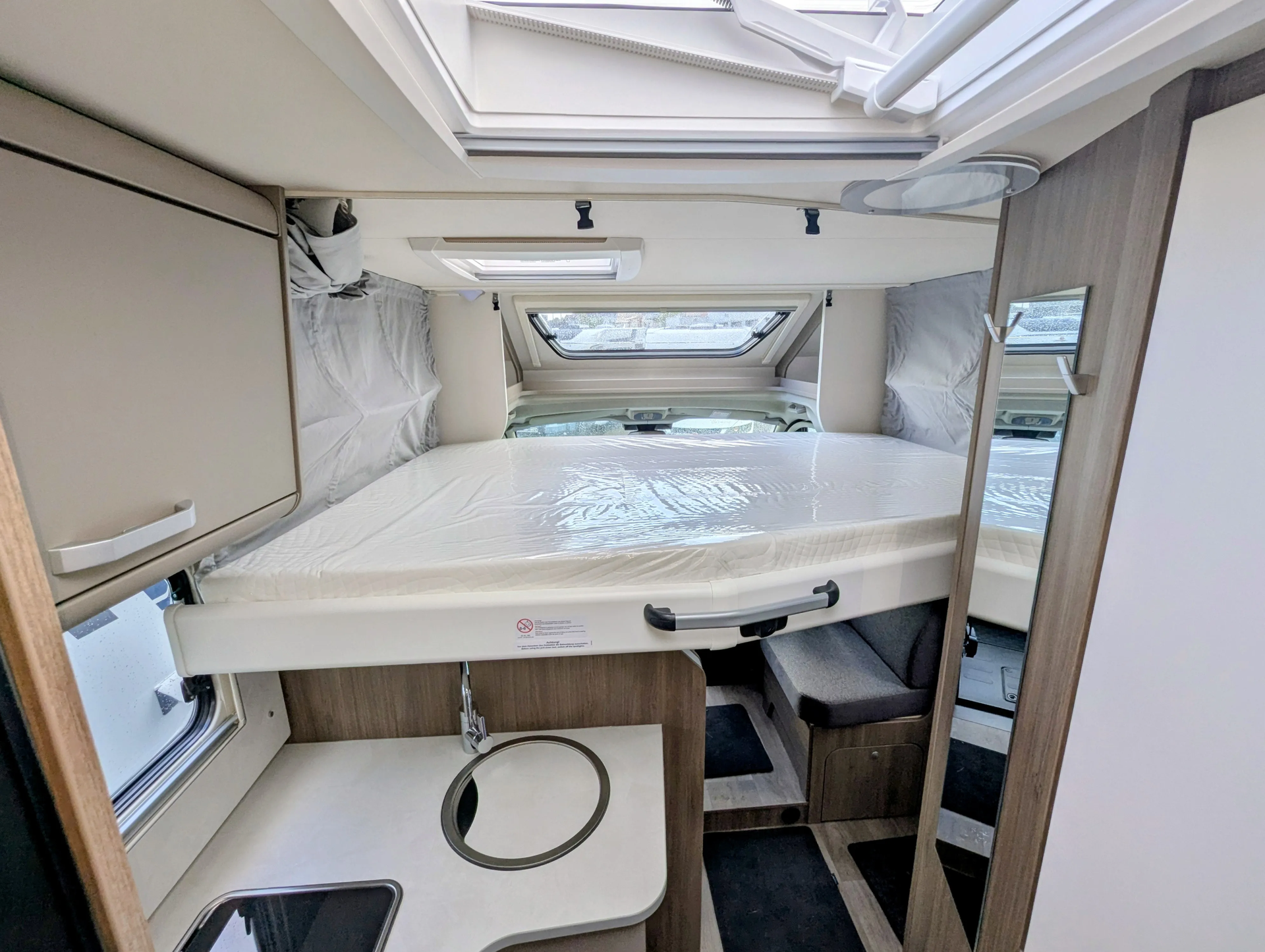 - Chassisfarbe Artense Grau Metallic, Faltverdunkelung Fahrerhaus, Fenster in Fronthaube, Abwassertank isoliert,