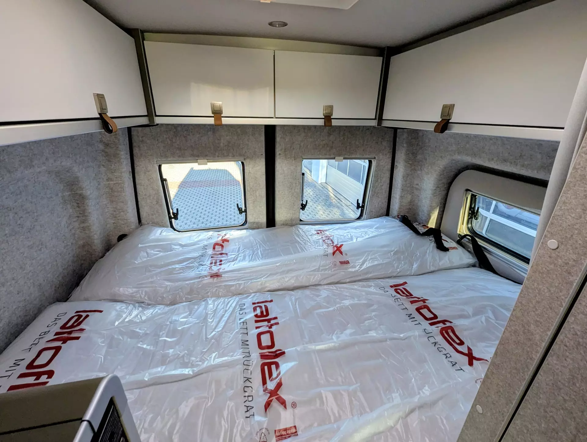 - Ausstellfenster im Heck in Fahrtrichtung links inkl. Verdunkelungsrollo und Mückenschutz