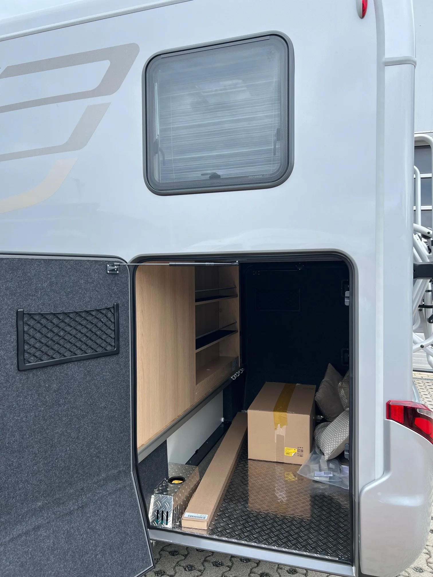 - Riffelblechboden und Filzverkleidung in Heckgarage
