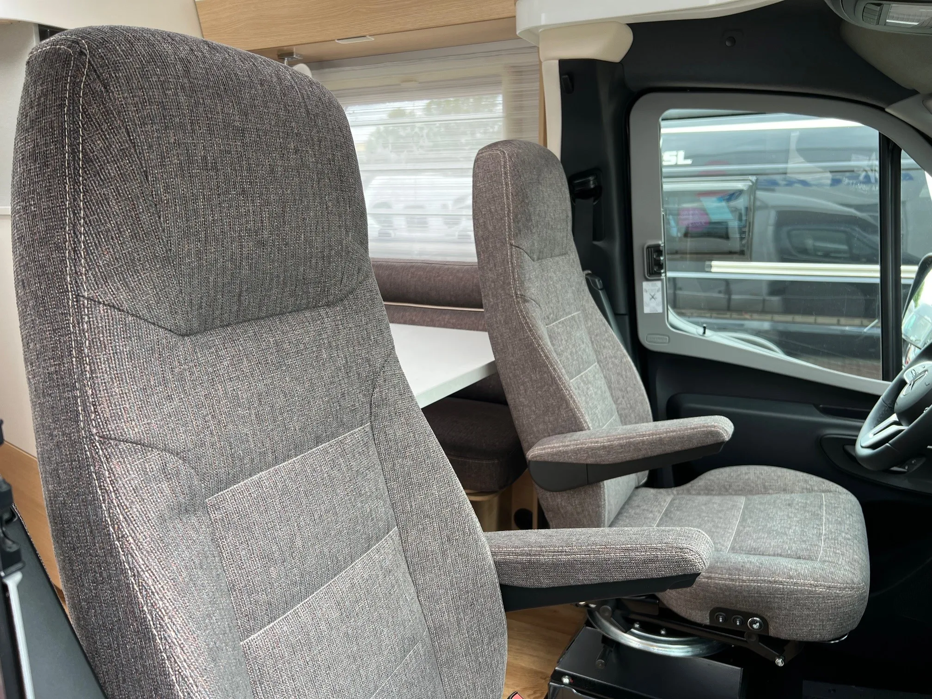 - Pilotensitze in Wohnraumstoff, dreh-/höhen- und neigungsverstellbar mit 2 Armlehnen