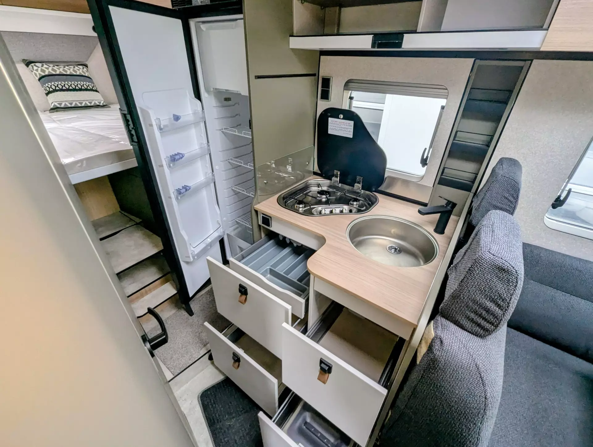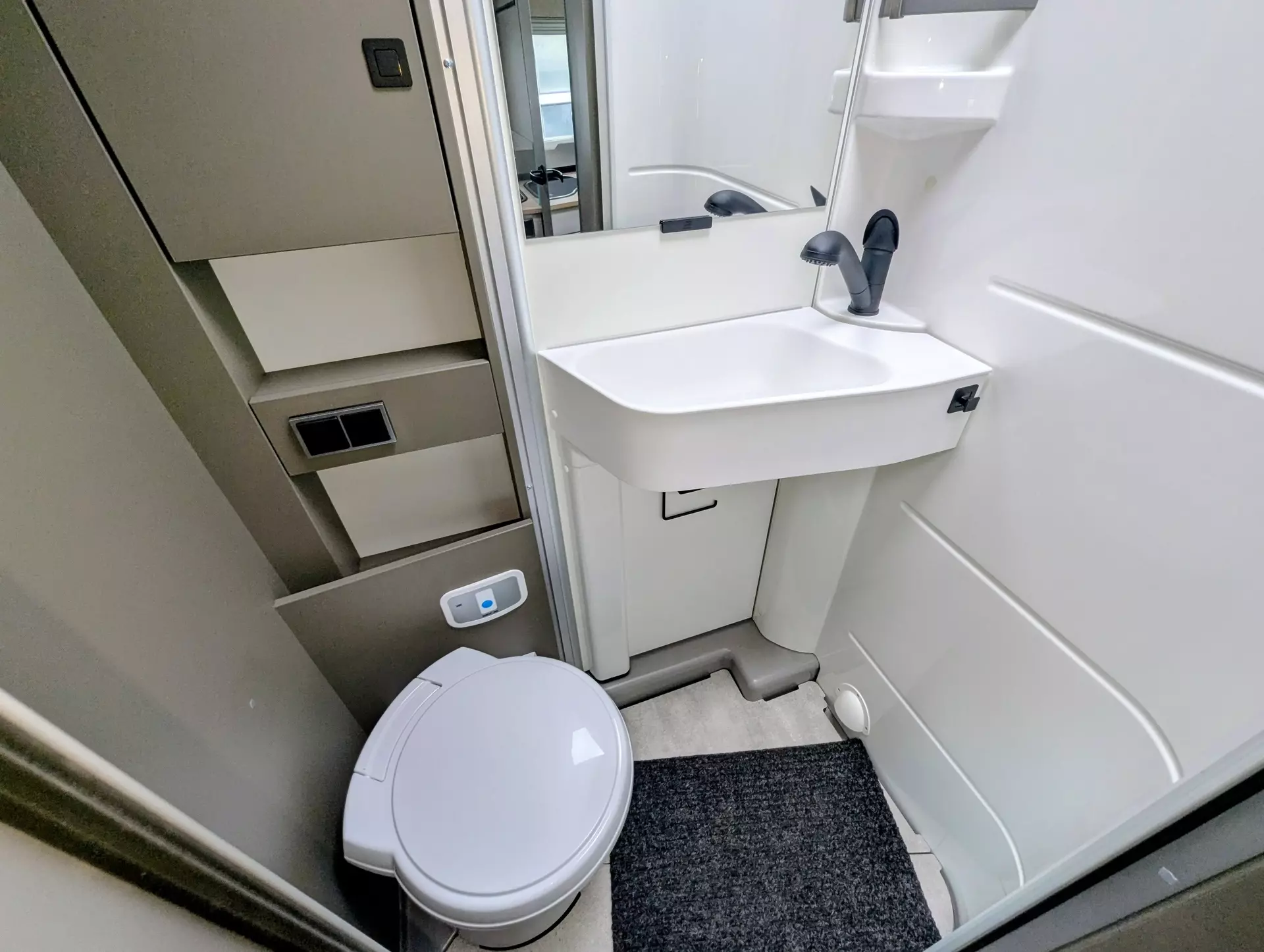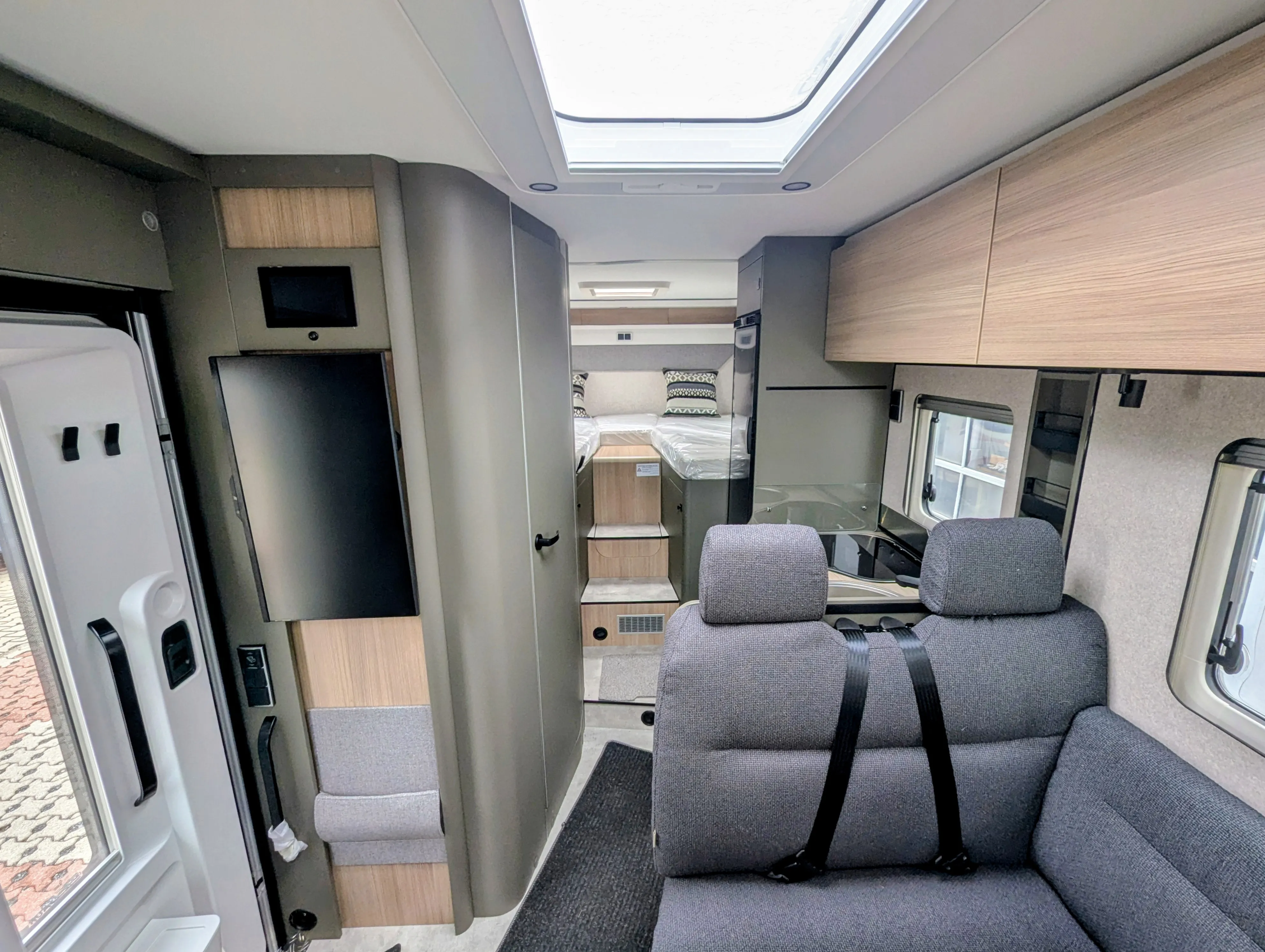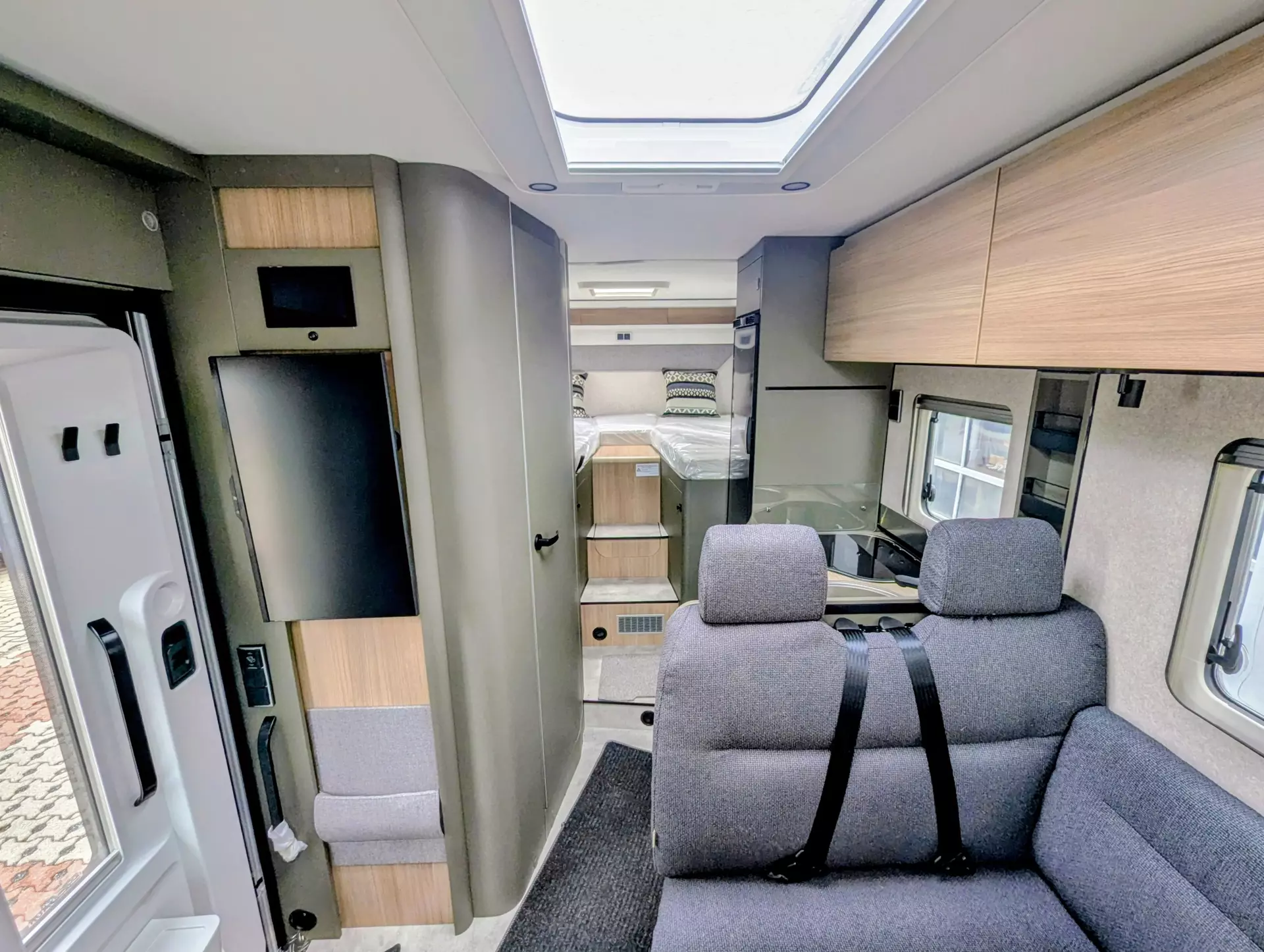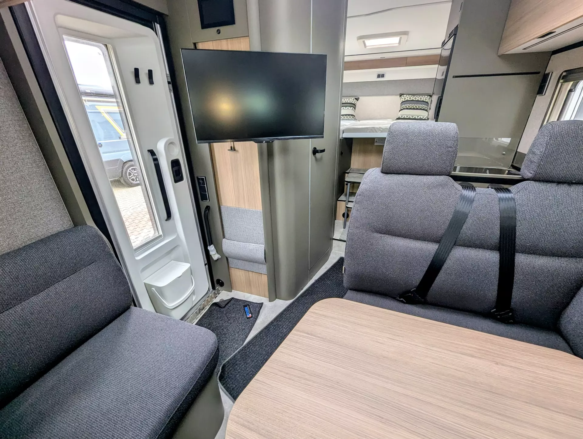 - Komfort-Eingangstür mit Fenster, Verdunkelungsrollo, integriertem Mülleimer und 2-fach Verriegelung