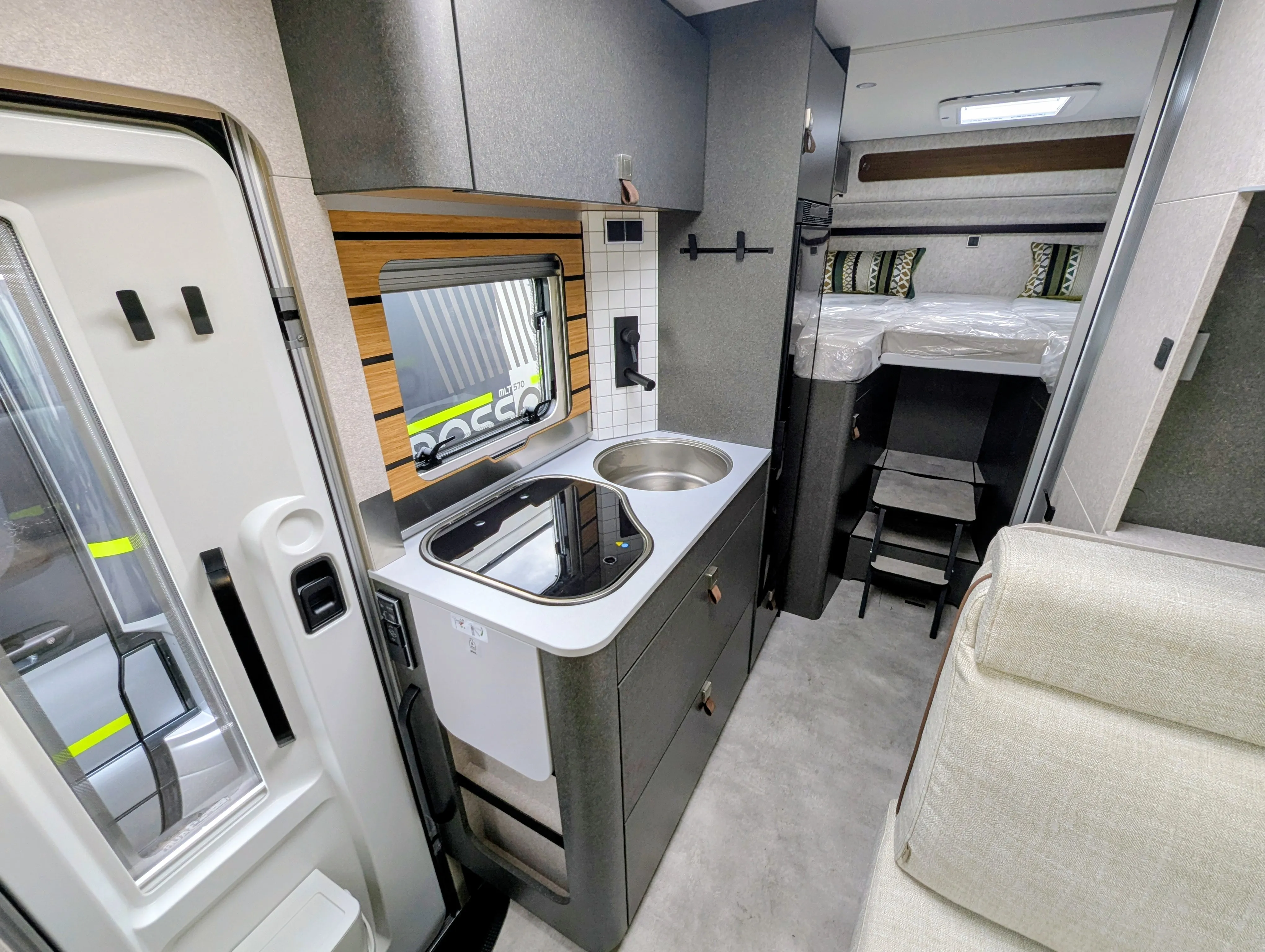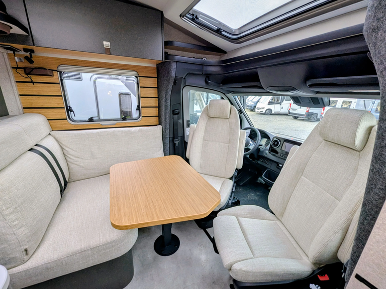 - Bettenbau für Komfort L-Sitzgruppe inkl. Zusatzpolster und absenkbarem Tisch unter Einbeziehung des Fahrersitzes