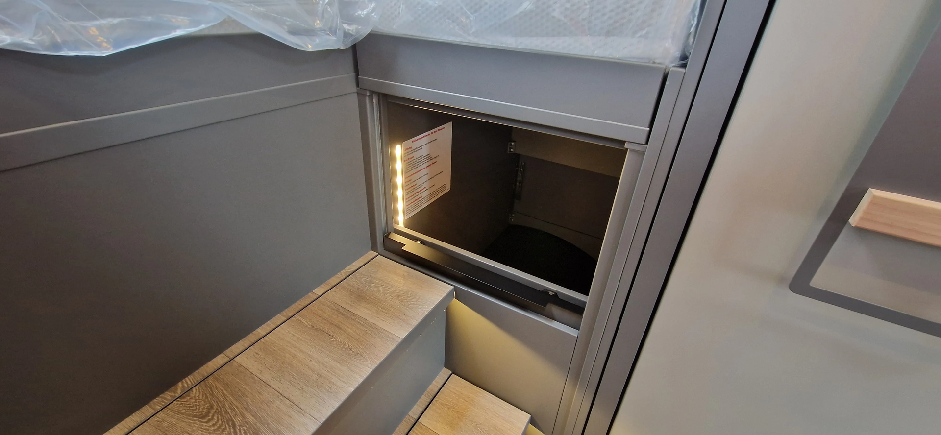 - Stauraumkiste ausziehbar auf Fahrerseite