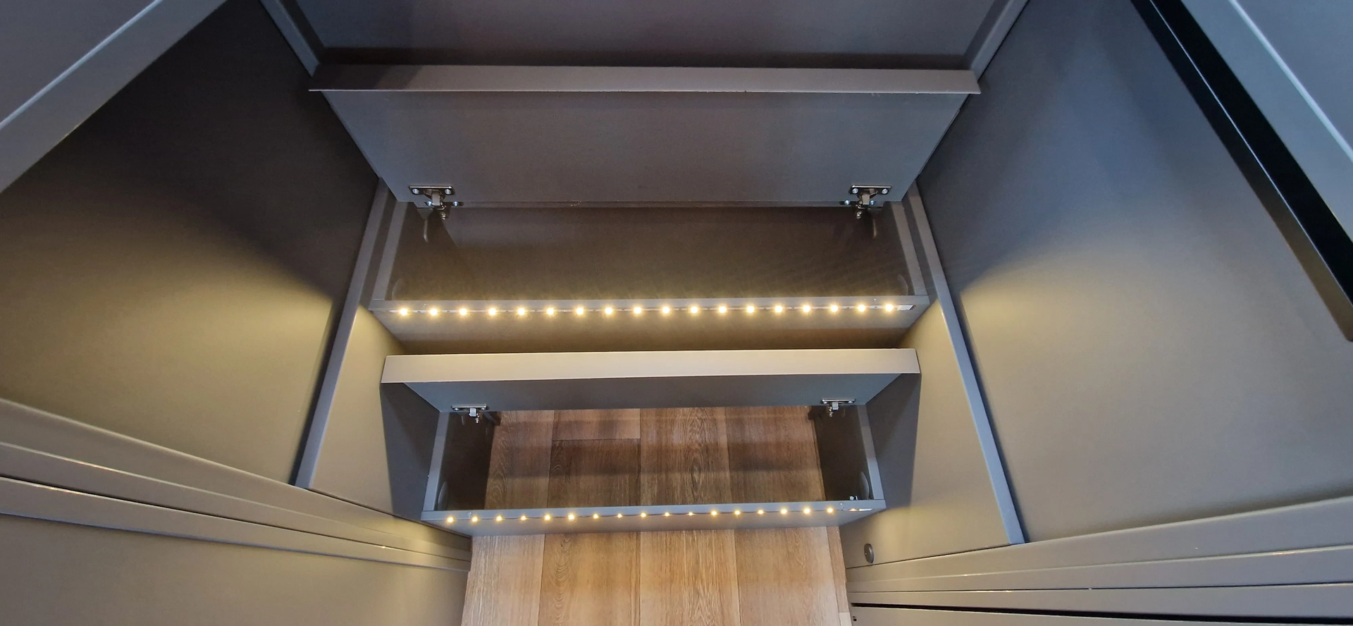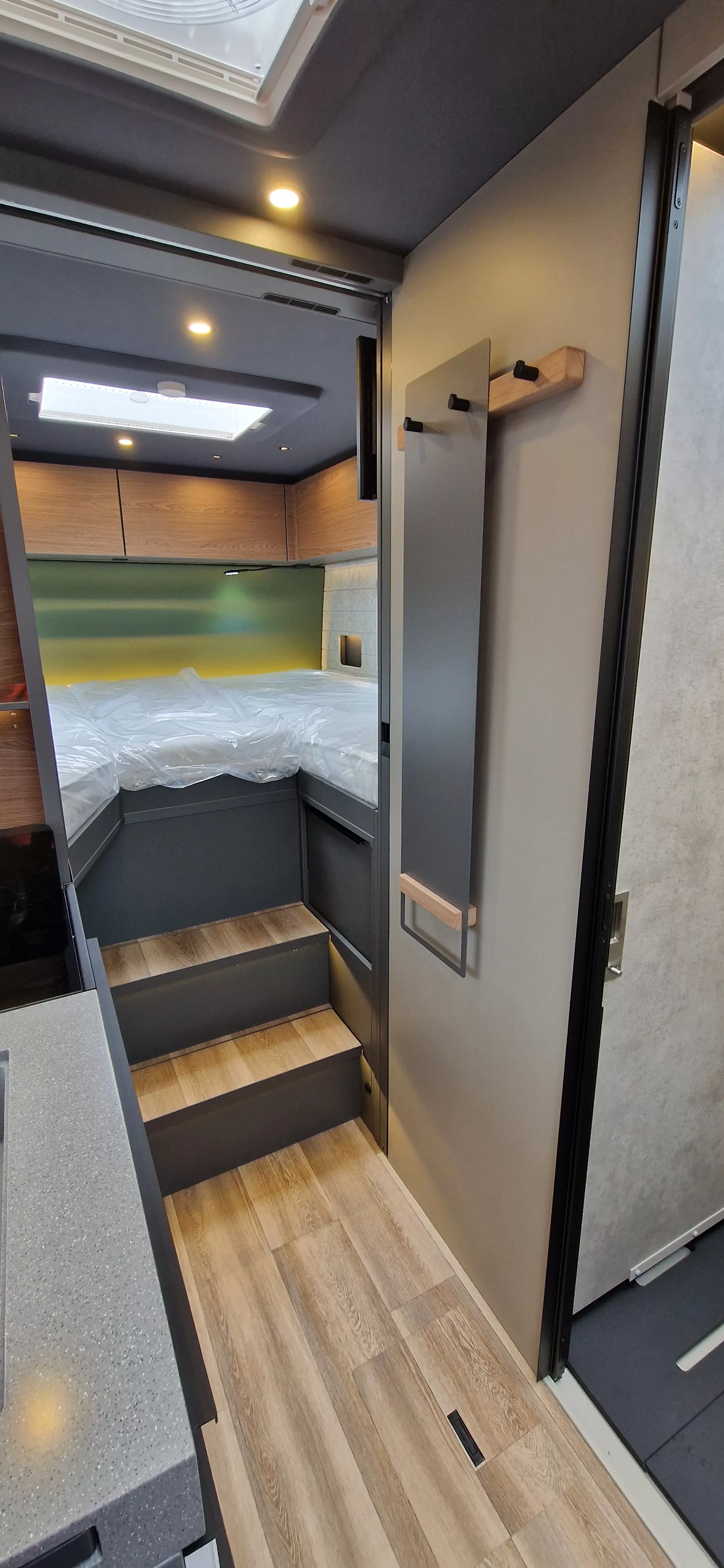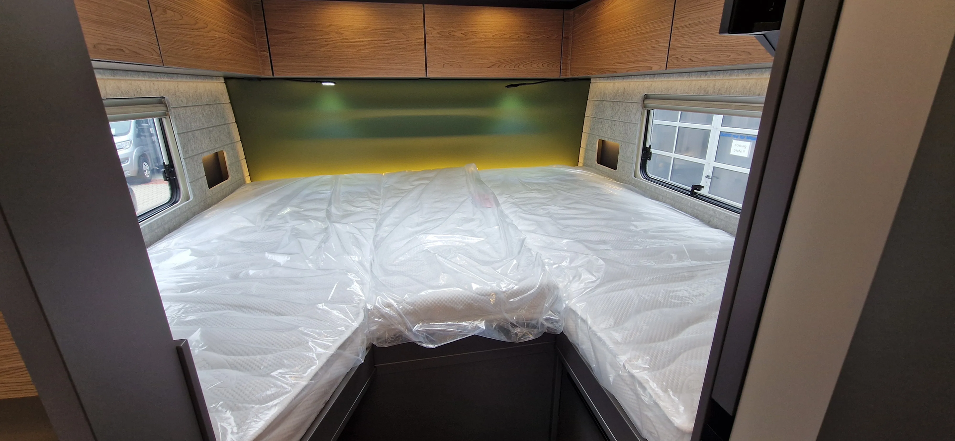 - Heckwandverkleidung im Schlafraum in Olivgrün