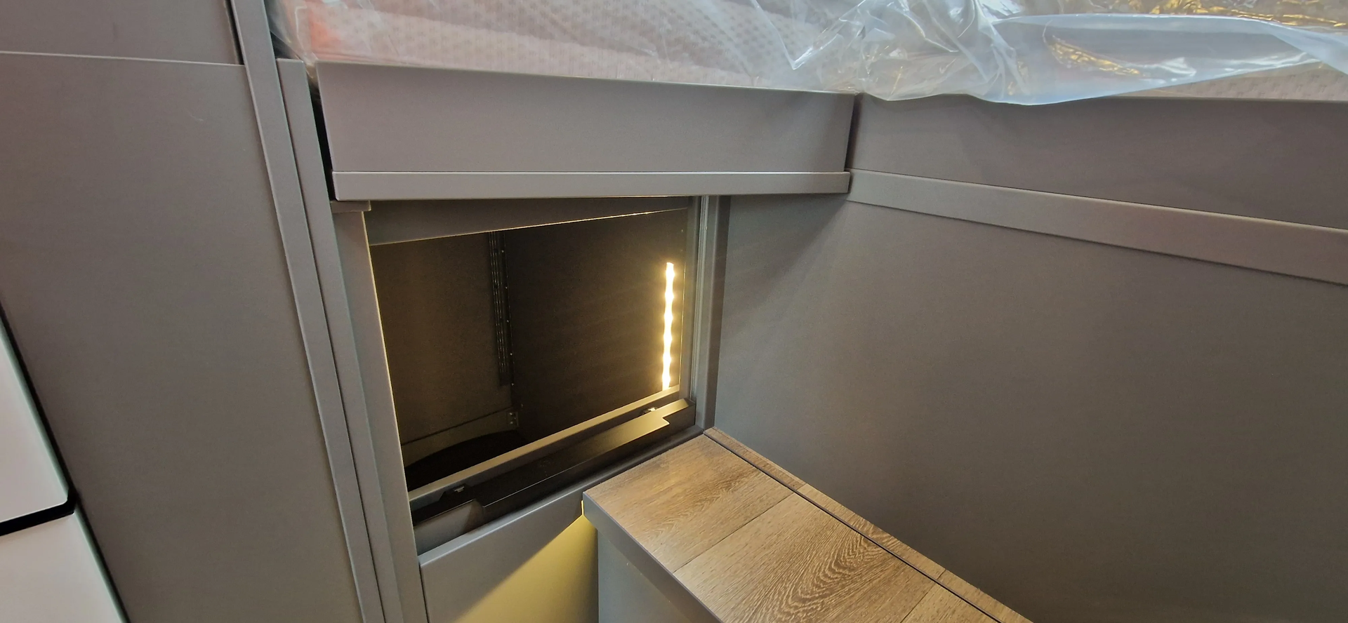 - Stauraumkiste ausziehbar auf Beifahrerseite