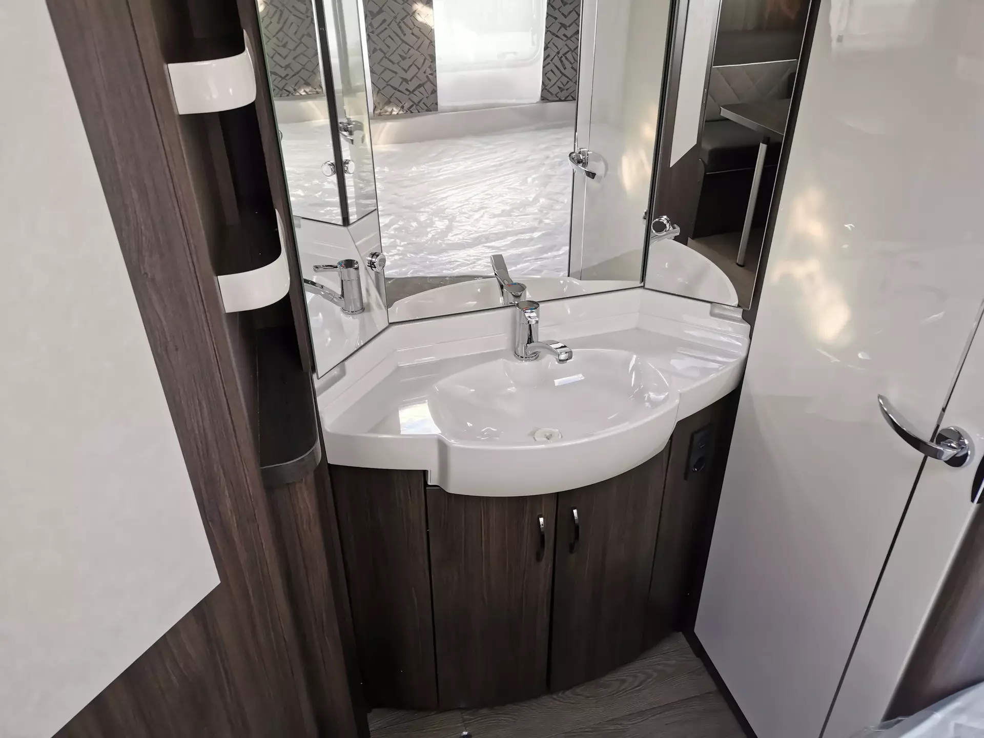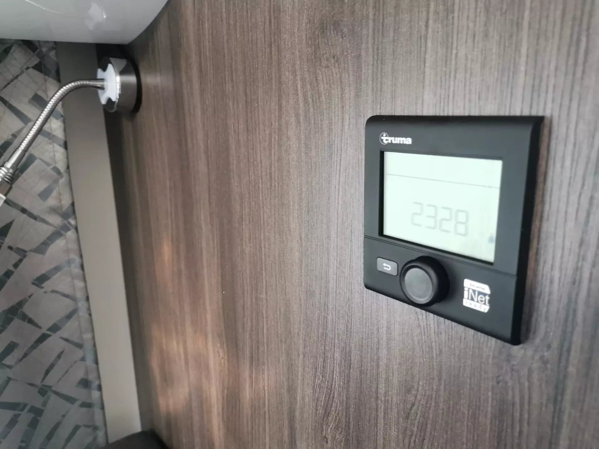 - Duscharmatur und Duschvorhang für Waschraum mit externem Waschtisch