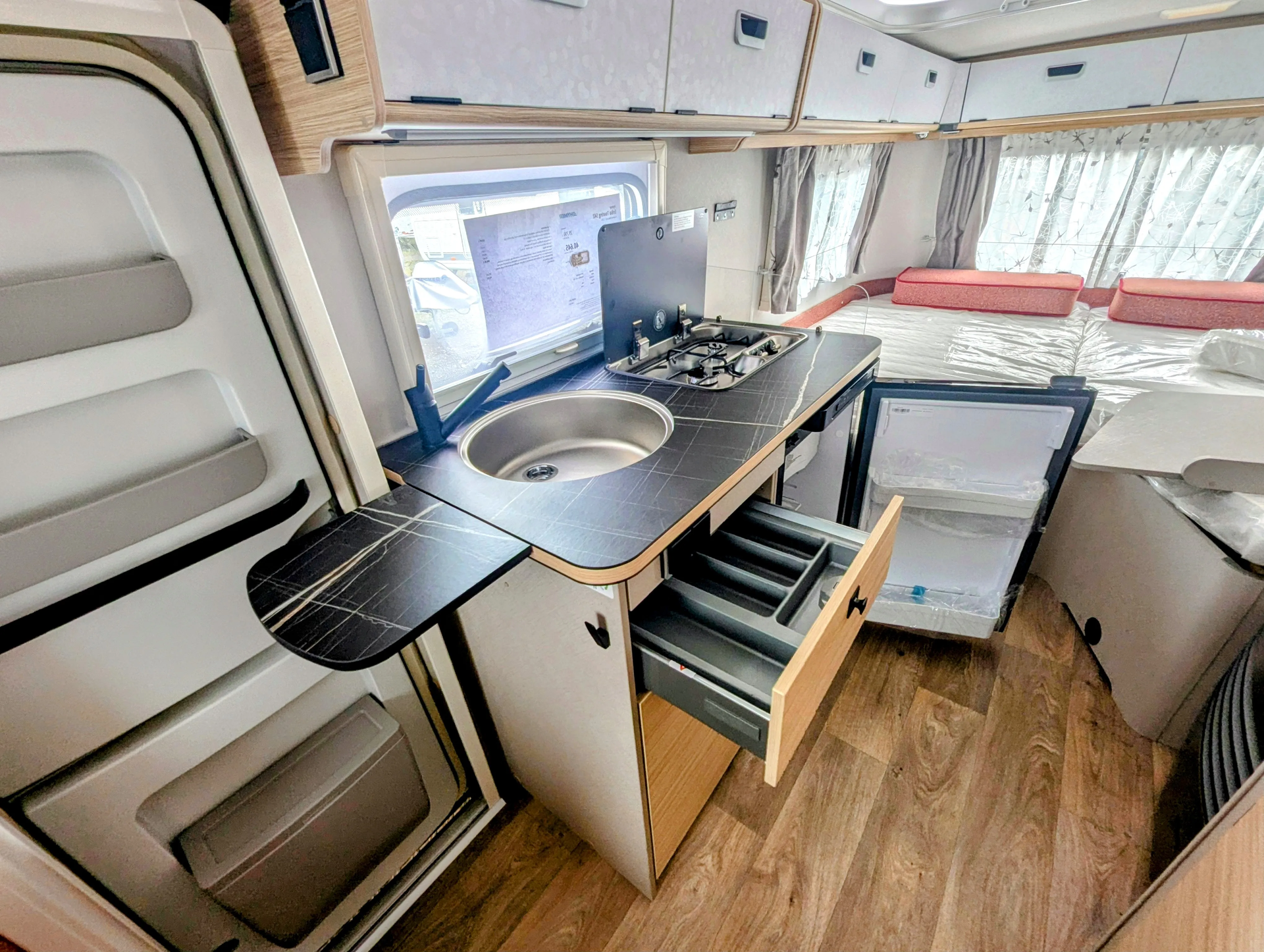 - Ambientelicht XL mit indirektem Licht oberhalb der Dachstauschränke und zwei zusätzliche ERIBA Multifunktions-Akkuleuchten