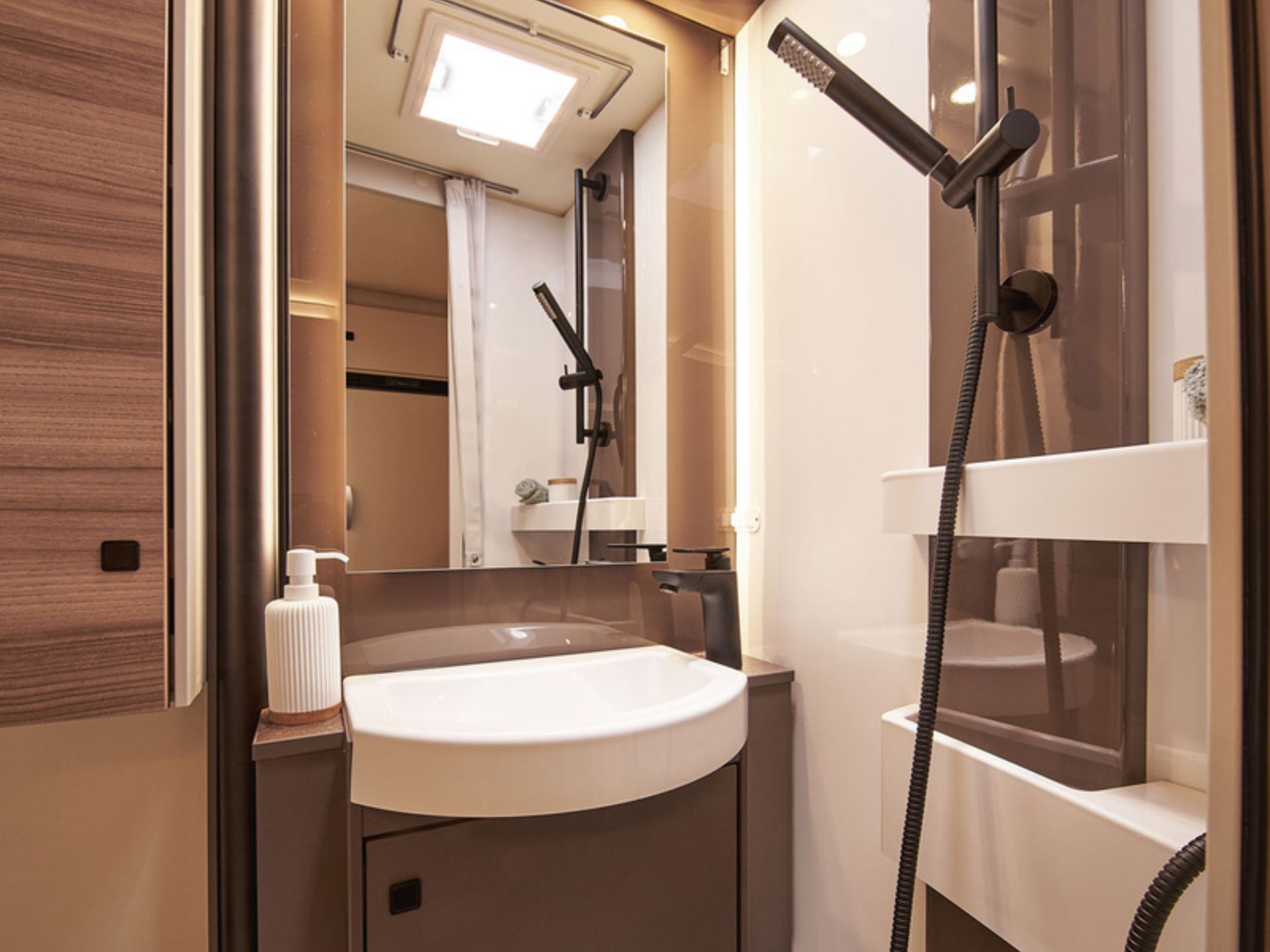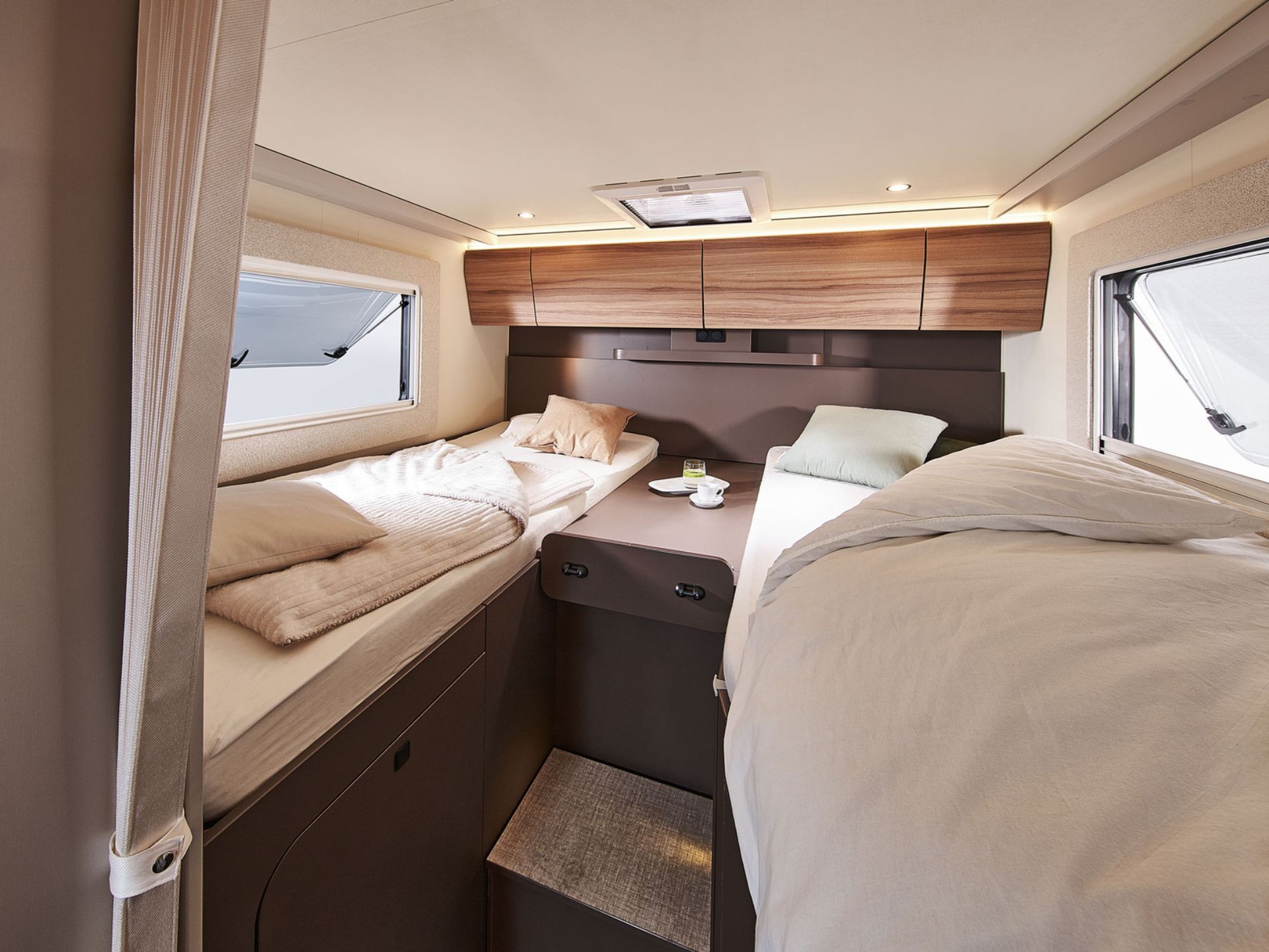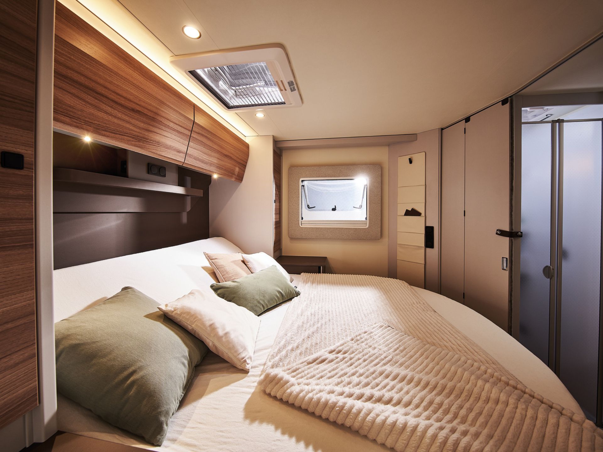 Dachhaube im Schlafbereich mit Verdunkelungsrollo und Fliegenschutz